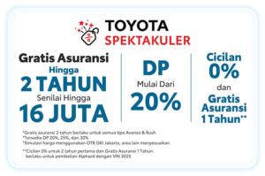 Toyota Friends yang melakukan pembelian mobil tipe Avanza dan Rush akan mendapatkan Gratis Asuransi hingga 2 Tahun senilai hingga 16 Juta dengan DP mulai dari 20%